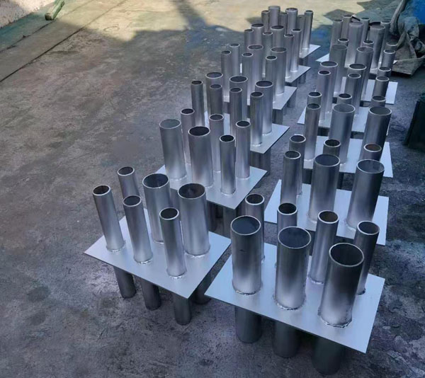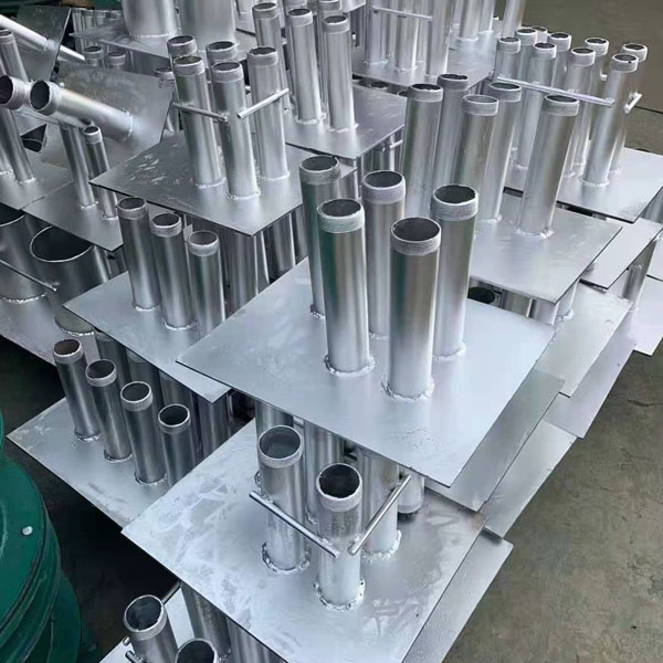 F型;鋼制套管 數(shù)量1材質(zhì)(Q23**)翼環(huán)數(shù)量1 材質(zhì)(Q23**) 固定法蘭 數(shù)量2 材質(zhì)(Q23** 擋板數(shù)量2 材質(zhì)(Q23**)鋼管和擋圈焊接后經(jīng)鍍鋅處理,再施行與套管安裝填充材料施工完后,再施行擋板和固定法蘭焊接。