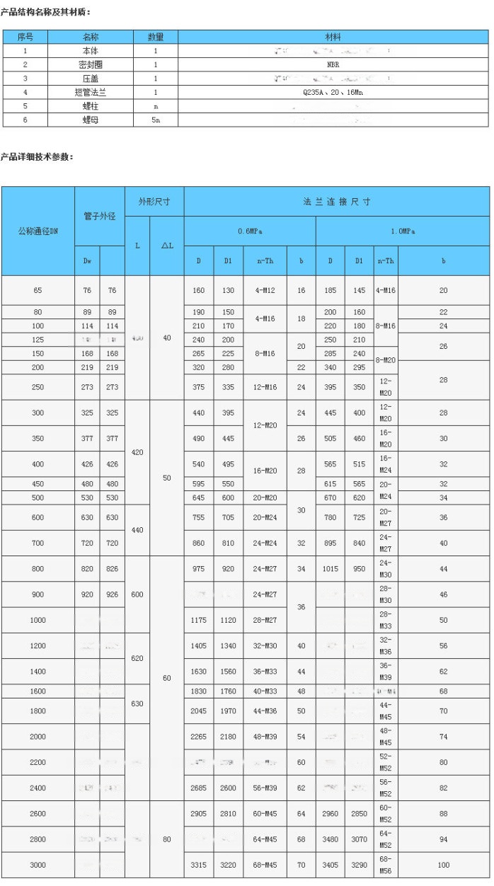 2.該產(chǎn)品采用金屬鑄造或焊接組成,松套部位選用梯形橡膠密封圈,在壓蓋和螺栓的作用下。